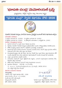 భూపతి చంద్ర స్మారక కథానికల పోటీ – 2026 -ఎడిటర్ ‘భూపతి చంద్ర’ మెమోరియల్ ట్రస్ట్...